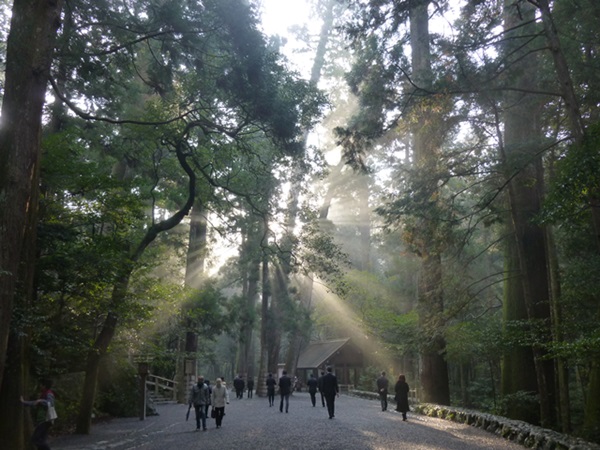 ちょうど朝日が木々の間から差込み、とても厳かな雰囲気でした。