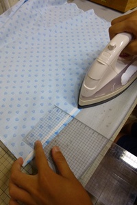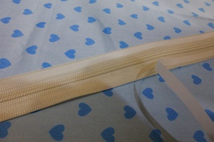 ファスナー付けるとこを1.5cm折り込んでいます。