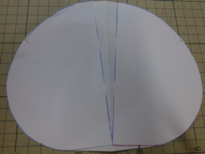 切り替えがあるときは、口金直下の型紙を直線で切って