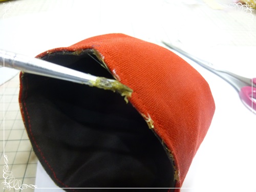 本体(さっき縫い上げた)の上端にもぬりぬり