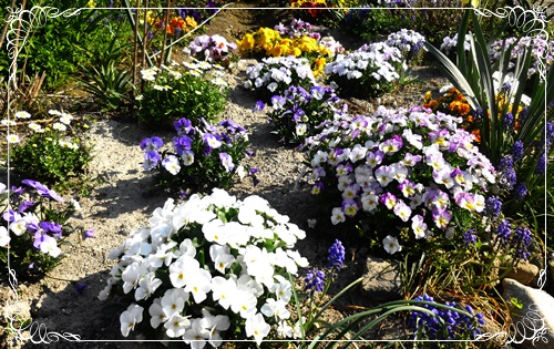 春爛漫 花壇のパンジーもきれいに咲き誇っています。